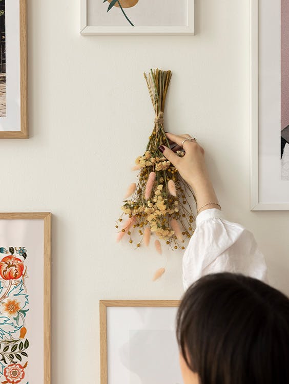 Appendere i tuoi quadri non è qualcosa che vuoi fare di fretta, quindi assicurati di avere abbastanza tempo. Ancora meglio, invita la tua migliore amica ad aiutarti. Prepara abbastanza ganci per quadri, un martello e un metro e inizia con il pezzo più grande e lavora verso l'esterno. Una volta appeso, non dimenticare di taggarci sui social media. Non vediamo l'ora di vedere le tue creazioni!
