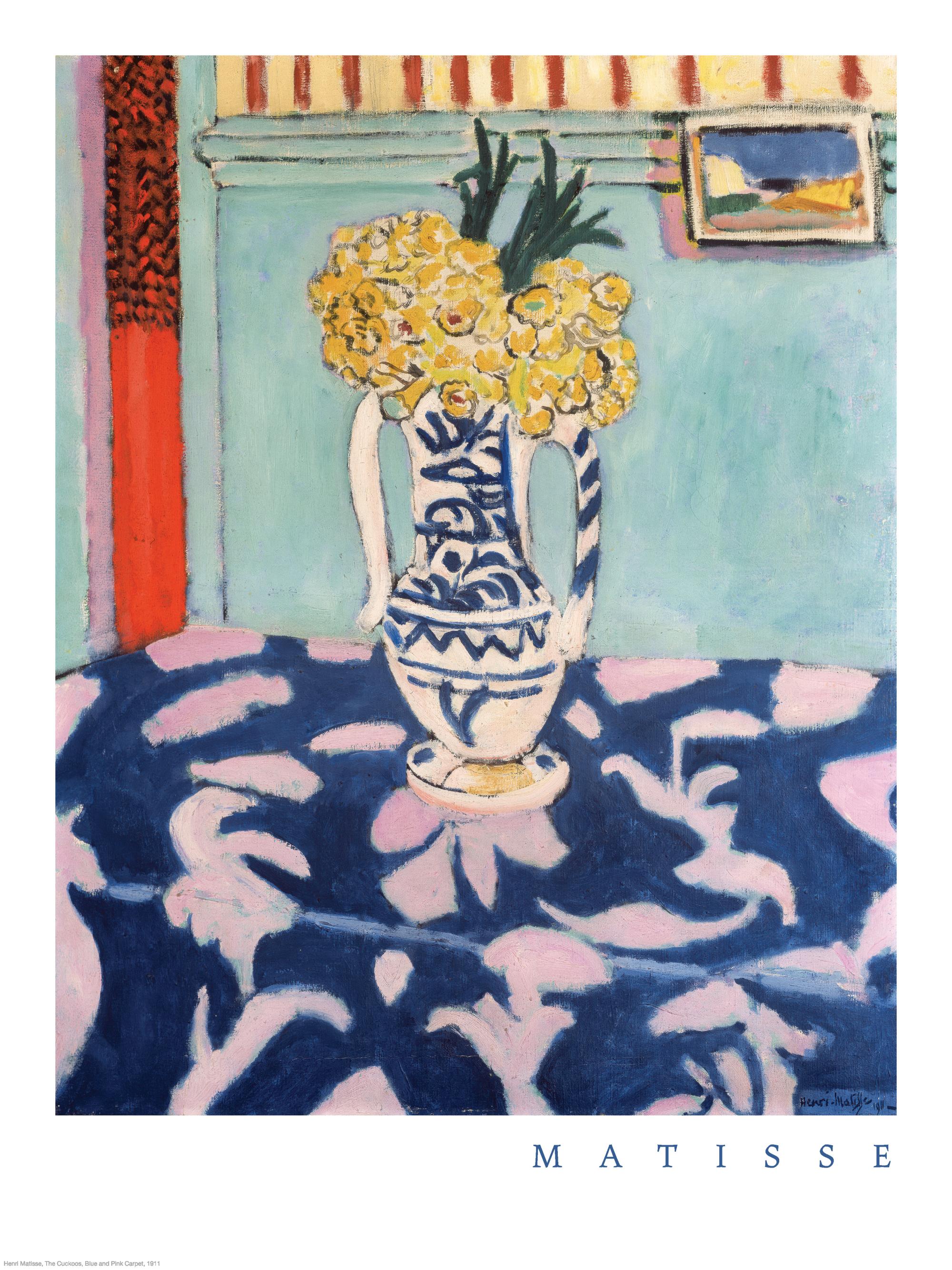 Un vaso blu decorato con fiori gialli: ispirato allo stile di Matisse, questo poster porta colore e arte nella tua casa.
