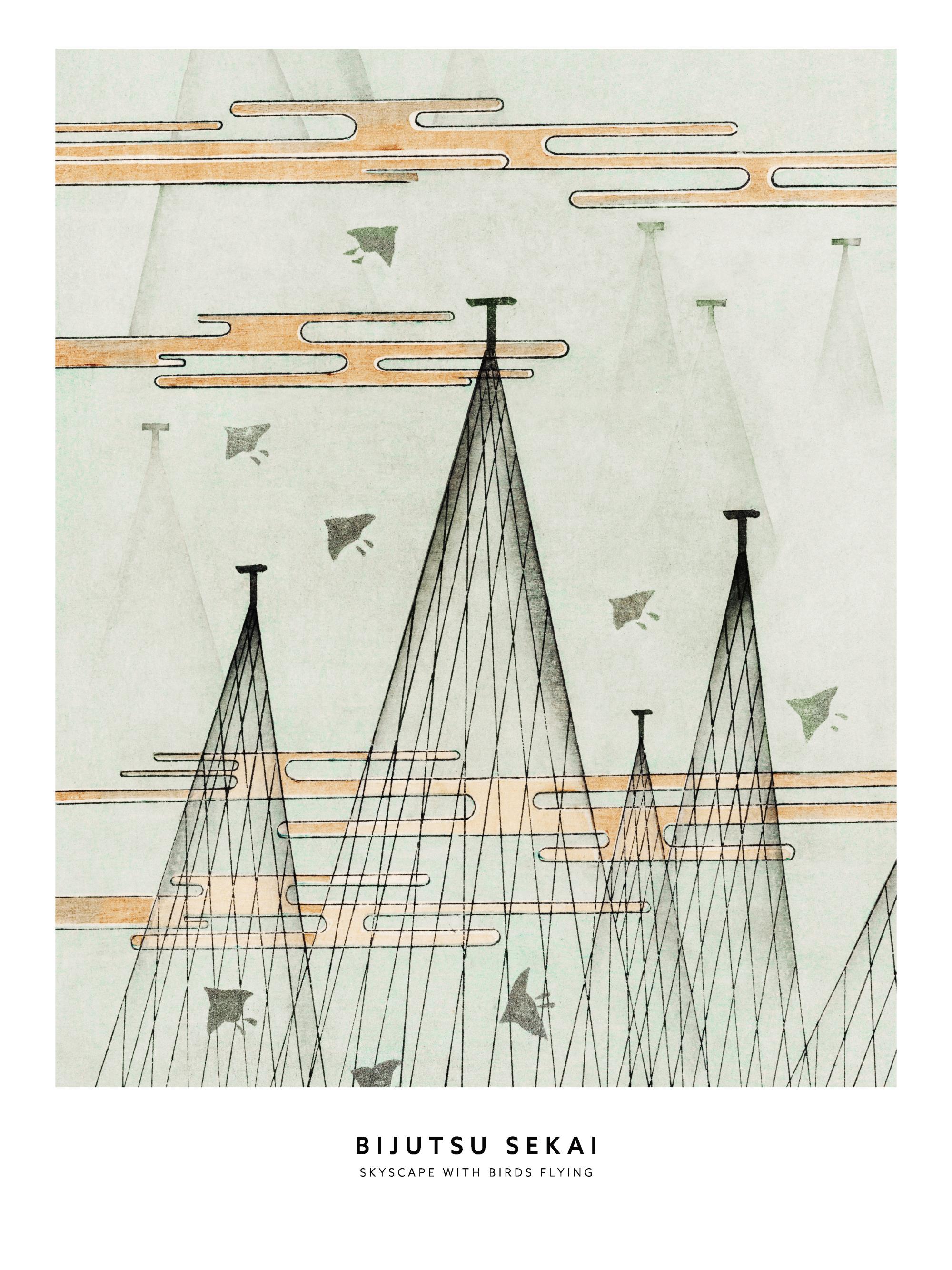 Watanabe Seitei - Paesaggio Celeste con Uccelli in Volo Poster